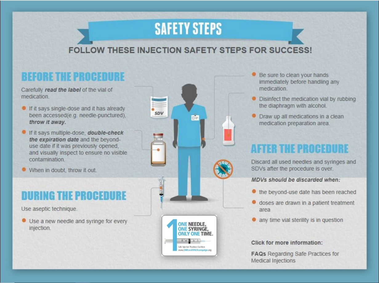 The CDC has published the One & Only Campaign that focuses on eliminating unsafe medication injections.